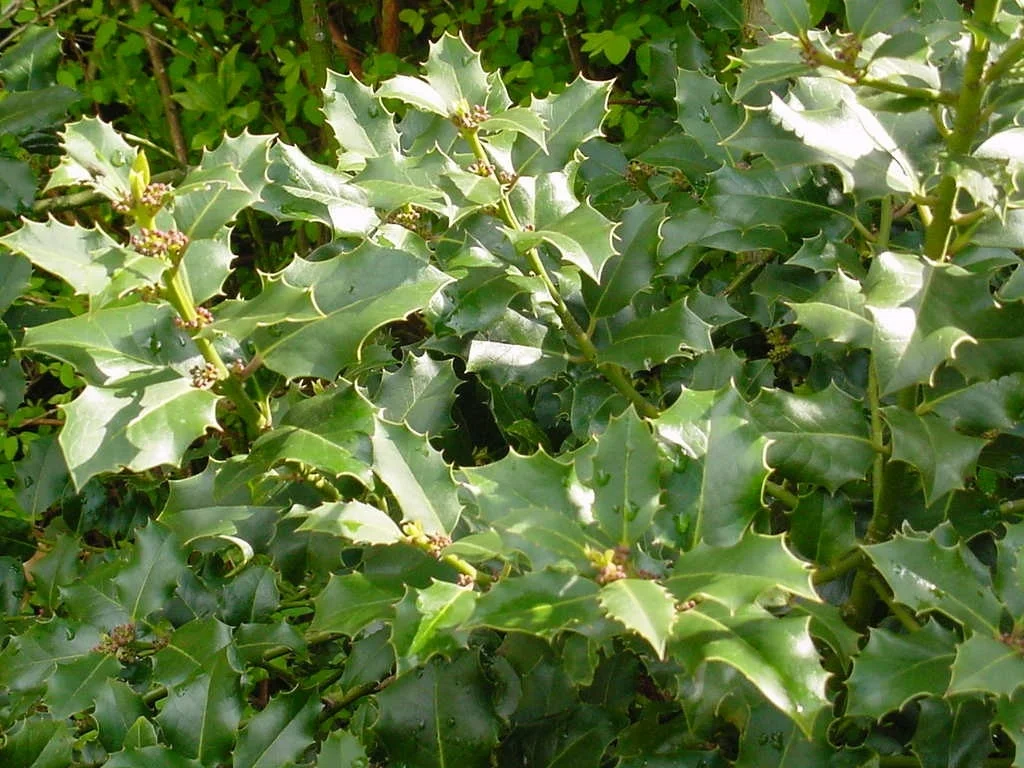 With its sharp, prickly leaves the holly is equated with protection and warrior energy with spear shafts and clubs being made from its wood. Pliny, the Roman historian, tells us that it was believed that if it was planted by a house or farm, it would repel poison and that its flowers cause water to freeze. He also says that a staff of holly wood, if thrown at any animal, even if it falls short of its mark, has the magical property of compelling the animal to return and lie down by it. In the woods, holly will often grow as a bush around larger trees in a protective manner preventing both deer and humans from coming near. This is especially seen with some oak trees. Celtic myth speaks of the endless battle that is fought every year between the Oak King and the Holly King representing summer and winter respectively. The Holly King is born on the dawn of midsummer's day, the time when the power of the Oak King has reached its peak. During the autumn months the Holly King grows in power and strength whilst the energy of the Oak King wanes. On midwinter's eve the Holly King is crowned and honoured, but the very next day its power is already waning because midwinter's day announces the rebirth of the Oak King. So the epic battle once again gathers momentum towards the next midsummer.