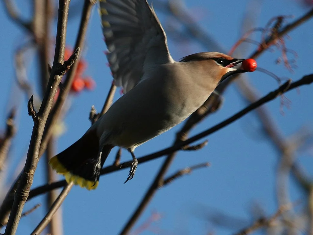 The Rowan can attain heights of up to fifty feet if allowed to grow without other woodland competition but more commonly reaches little more than twenty feet. In southern Britain it was chiefly grown as an underwood and used to nurse young oaks and other timber trees. However once these trees outgrow it, they begin to screen it from its share of air and light leading eventually to its demise. The Reverend Johns in his 1903 book "The Forest Trees of Britain" says of the Rowan, "On the hills of Cheshire and Derbyshire it does not often attain a great size; in such situations an entire tree, with roots, leaves, and flowers, is sometimes found not more than nine inches high." In May or June it produces dense clusters of creamy-white fragrant flowers not dissimilar to the hawthorn but much smaller. The fruits are like miniature apples, the size of holly berries, and bright scarlet in colour with yellow flesh. They ripen in September and are highly attractive to birds such as thrushes and blackbirds (hence it name of Fowler's or Birdcatcher's Service). The seeds have a leathery coating to protect them from the action of digestive fluids and when passed through a bird's intestines actually germinate far quicker than if sown by hand when the seeds will lie in the earth for some eighteen months before shooting.